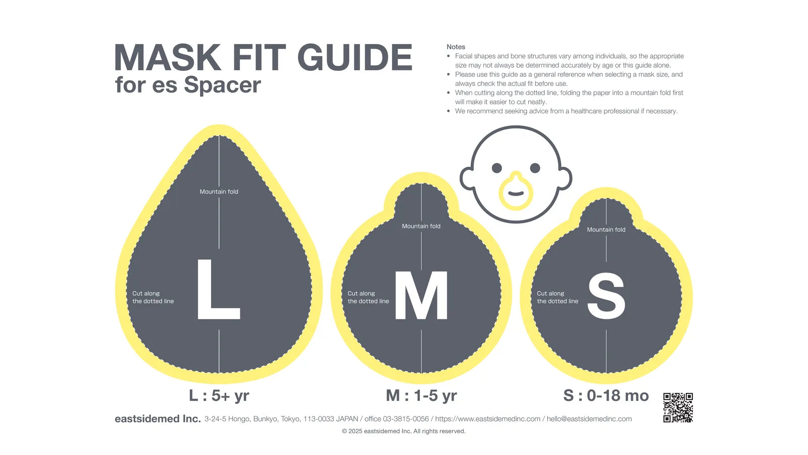 マスクサイズを簡単に確認できる「es スペーサー専用 MASK FIT GUIDE」をご用意しました。